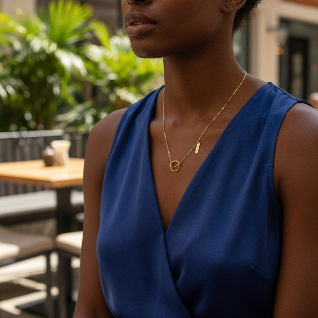 Sublimez votre port de tête avec le Collier Céleste, une création minimaliste en plaqué or. Son pendentif délicat capte la lumière à la perfection, ajoutant une touche de magie et de raffinement à toutes vos tenues quotidiennes.